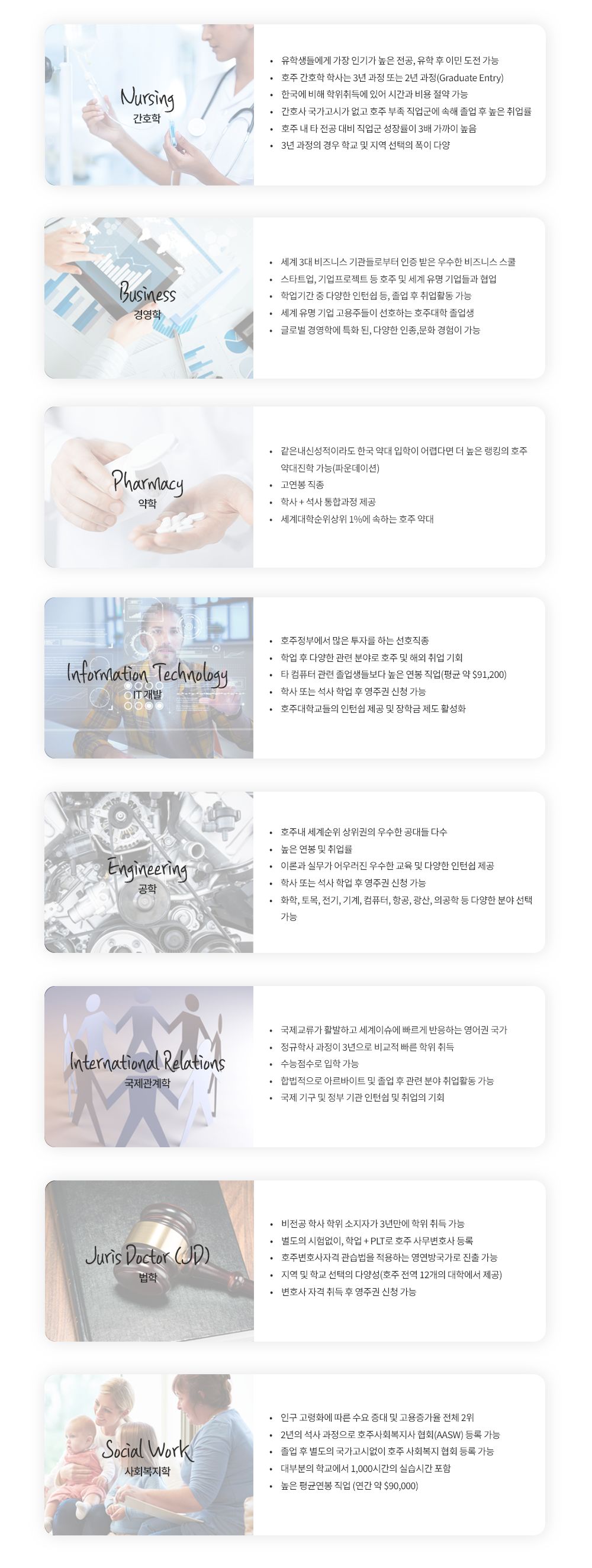 - 호주 뿐만 아니라 세계 곳곳의 대학 캠퍼스에 센터를 설립, 파운데이션/디플로마/영어과정 제공