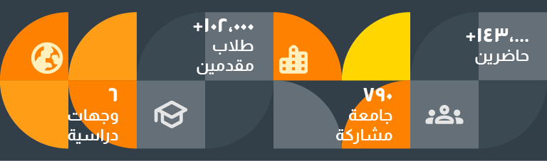 *تقدم بعض الجامعات المشاركة في المعرض معلومات وعروض خاصة ببرامج الدراسات العليا. لمعرفة المزيد من المعلومات عن برامج الدراسات العليا المتاحة في جميع الجامعات، احجز موعد مع مستشارك الشخصي في آي دي بي.