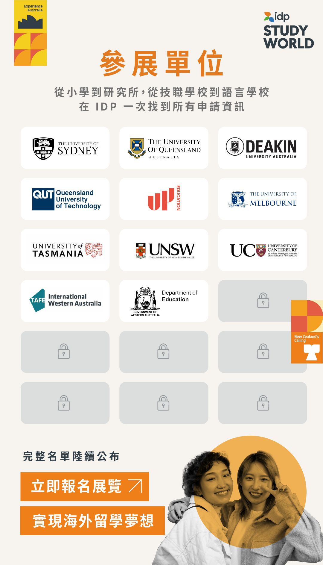 參展學校 | 邀請世界百大名校代表出席現場,與你分享最詳盡的學校申請秘訣與獎學金資訊。 | |