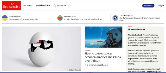 Giao diện của The Economist với các bài báo bằng tiếng Anh