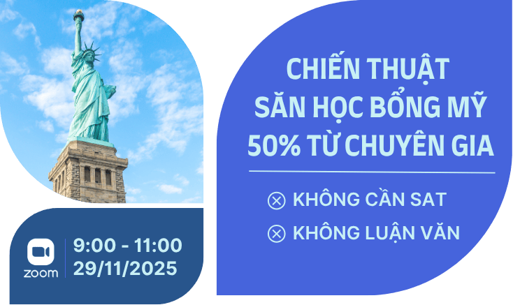 Đăng ký tham gia hội thảo du học Mỹ trực tuyến để cập nhật sớm nhất danh sách học bổng giá trị từ 50% tại các trường Mỹ, nắm bí quyết săn học bổng thành công và tối ưu hoá lộ trình du học cùng chuyên gia.
