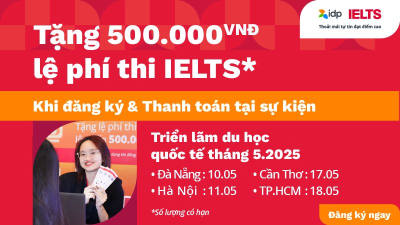 Ưu đãi lệ phí thi 300.000VNĐ: dành cho các đăng ký và thanh toán lệ phí thi tại văn phòng IDP tại Tp. HCM, Hà Nội và Đà Nẵng.